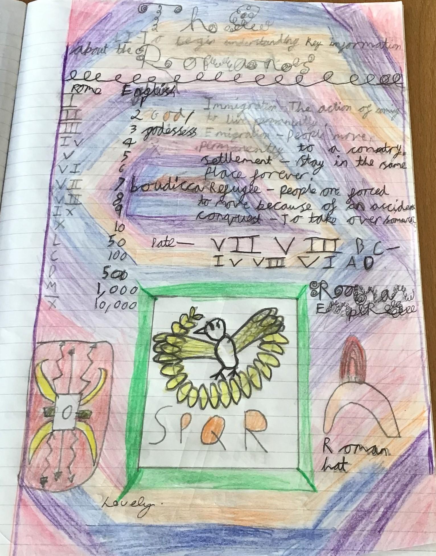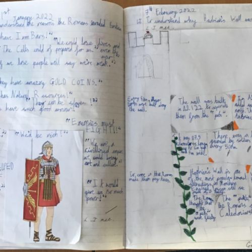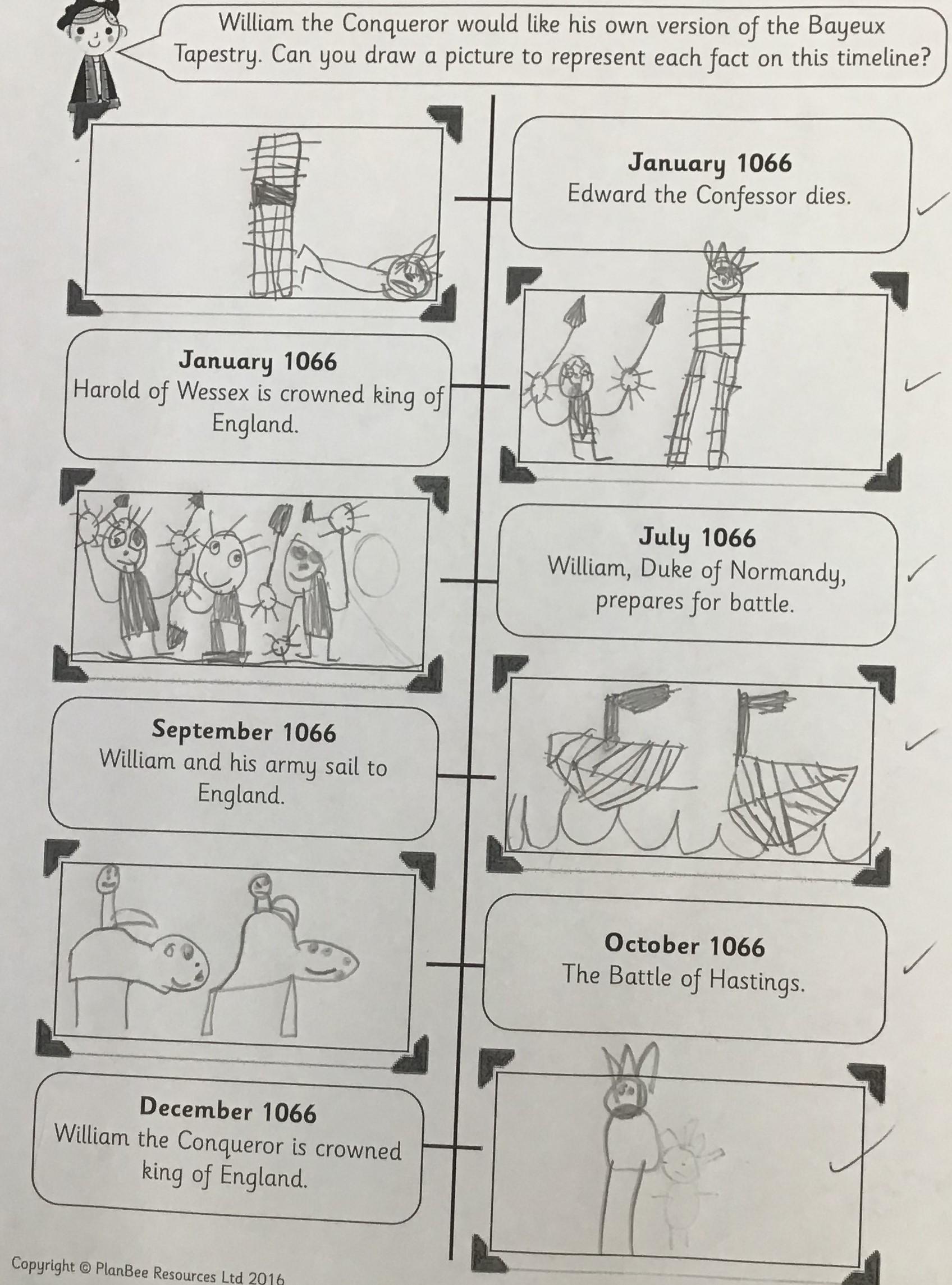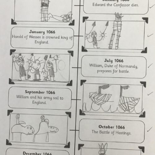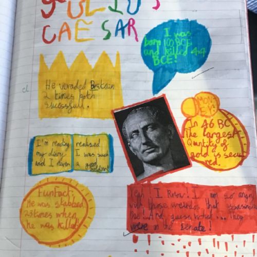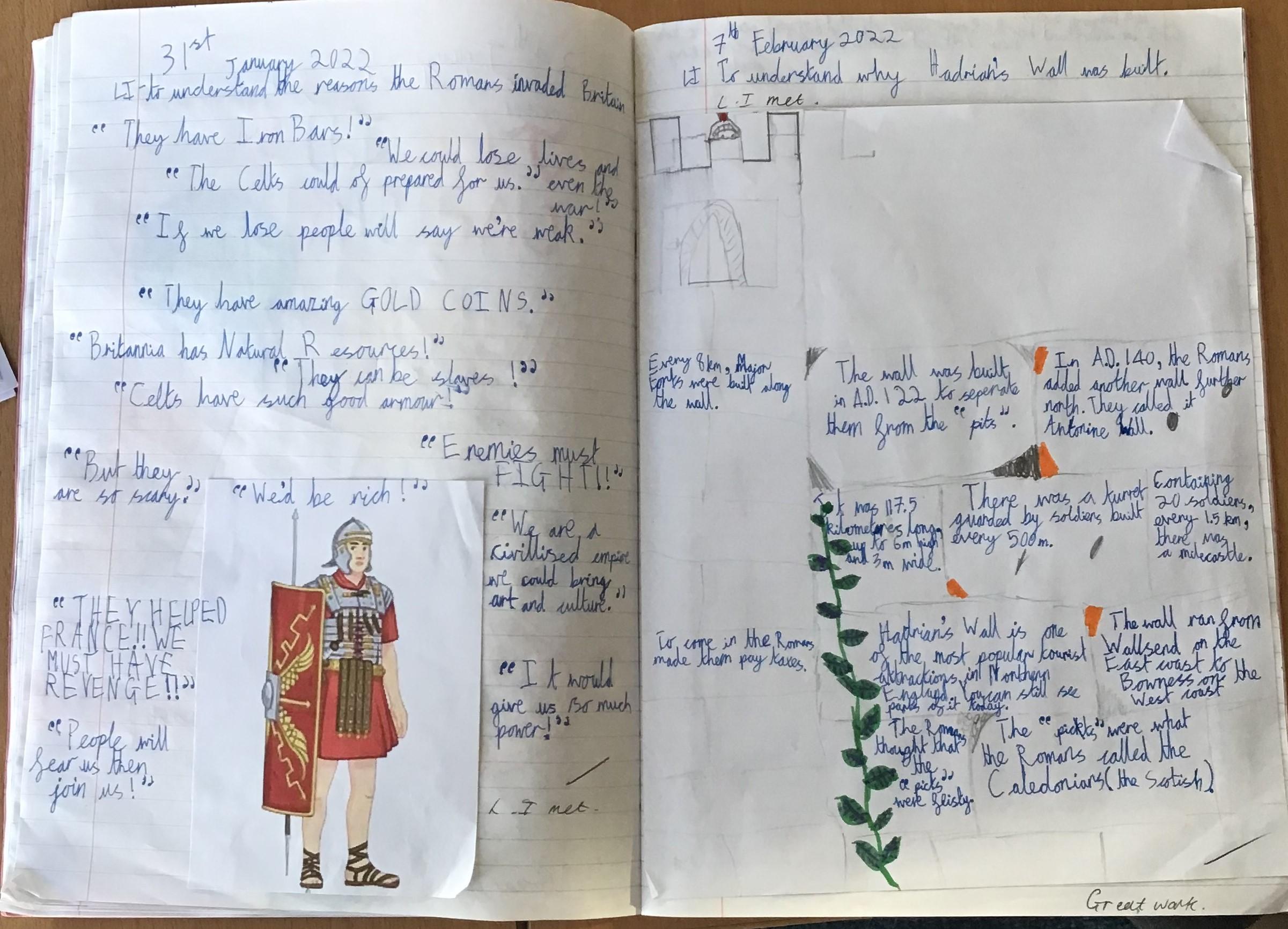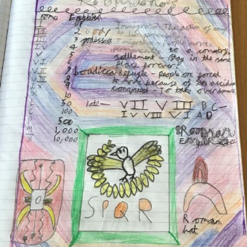 All classes in both Key Stage 1 and 2 alternate the terms with history and geography themes. The term in which history is taught, lessons are weekly and generally 90 minutes in length, however some classes will block their learning.   Children have the opportunity to work alone, in pairs or as part of a mixed group when working on projects, reading or fact- finding tasks. Children are encouraged to use computers, the library, artefacts and interact respectively with outside agencies that are invited in. They will be able to retain information from experiencing first hand life as a Roman or Ancient Greek person.  They are also encouraged further up the KS to question sources of information and relate knowledge to other areas of learning. They will have an understanding of certain significant events and when chronologically they took place.