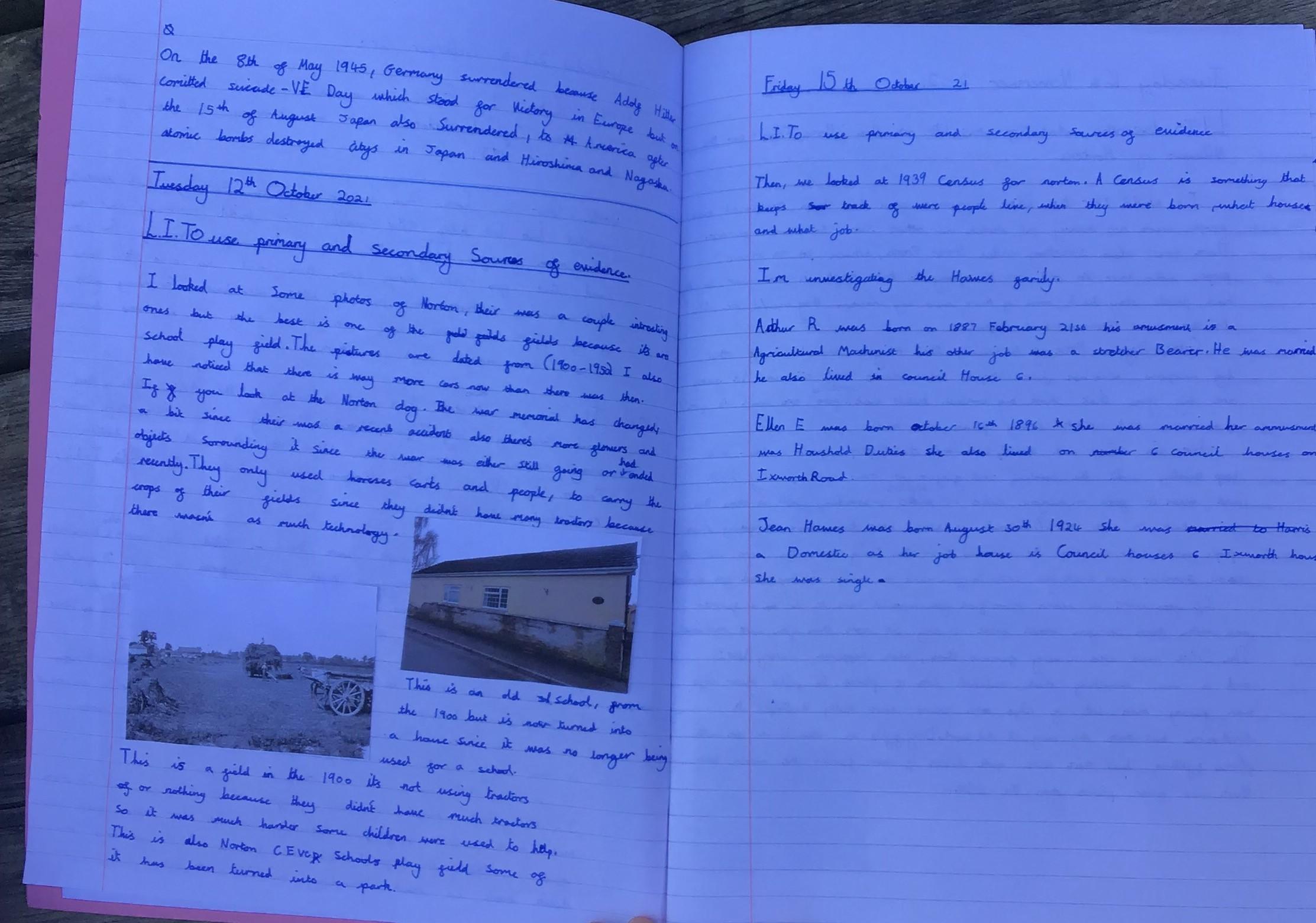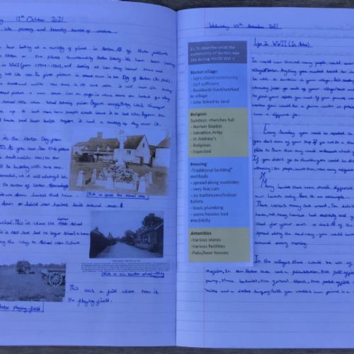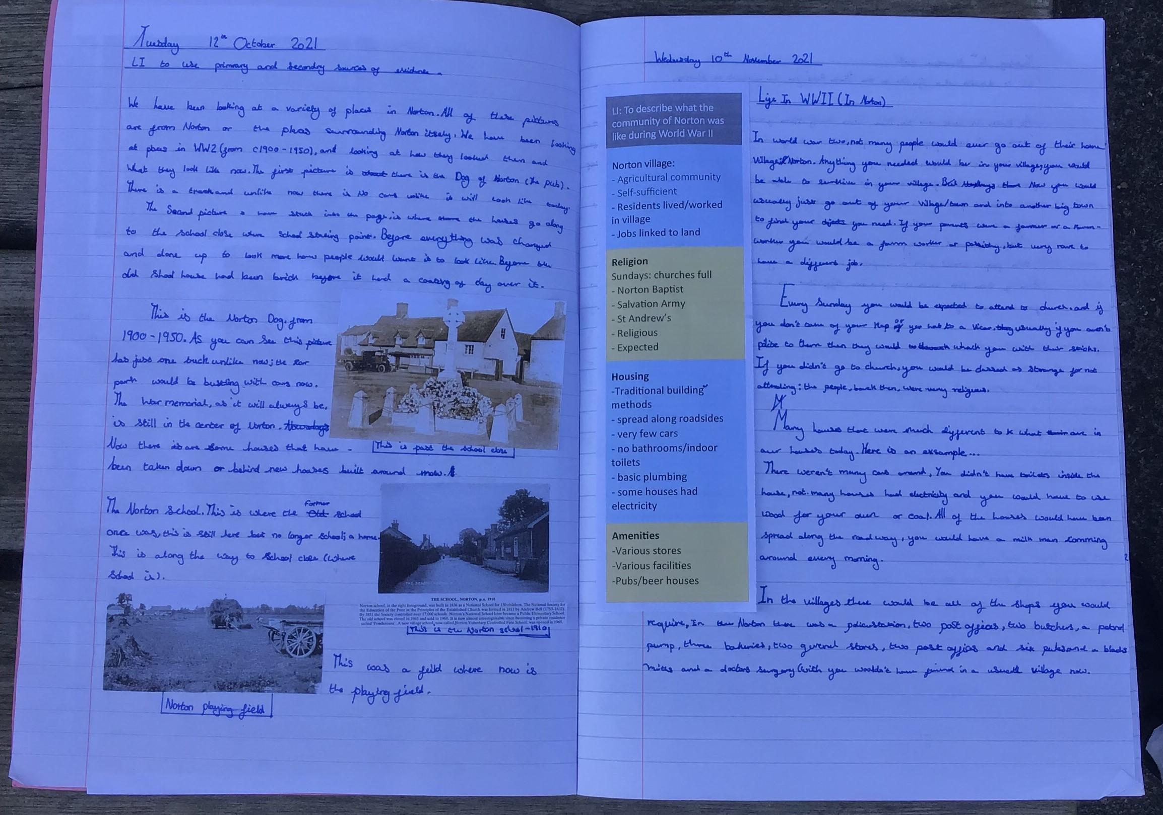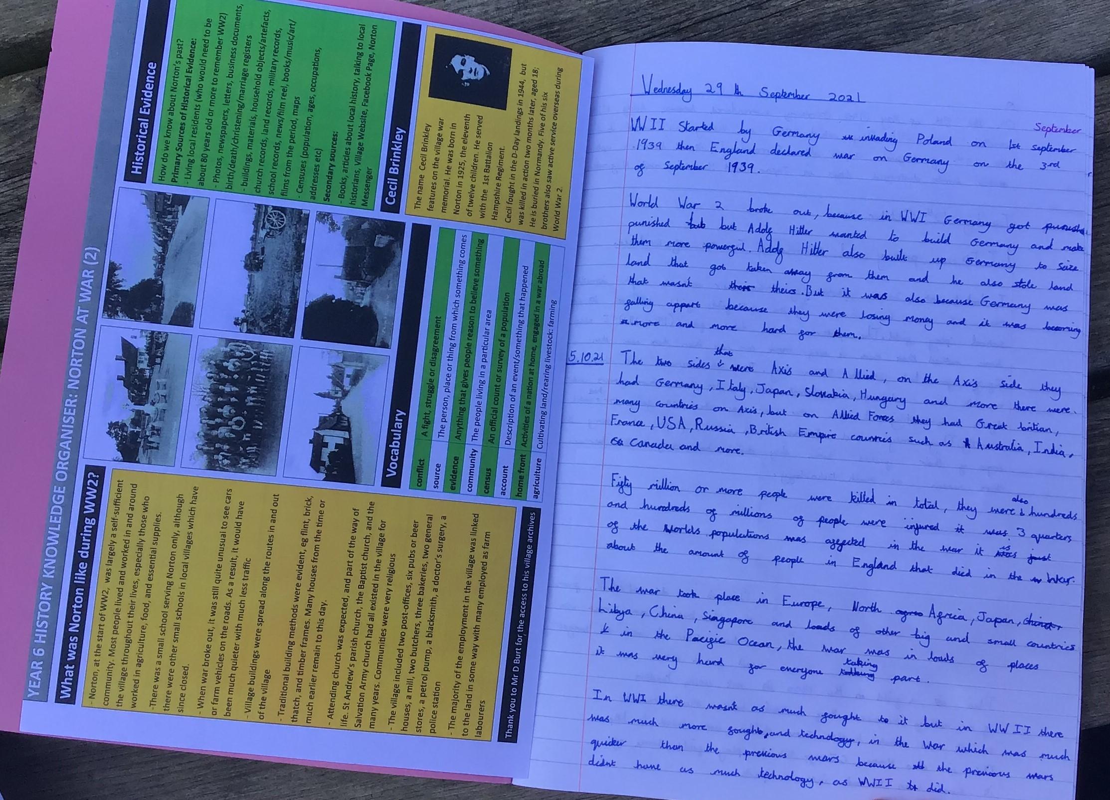 At Norton CEVC Primary School we aim to enrich children’s knowledge of History.  It is important for children to immerse themselves in experience and embed the ideas they learn each year. Every term we reflect back on previous learning and at the end of a topic each class demonstrates their vocabulary, understanding and new skills through quizzing, presentations or special events. This may be a study of a local war hero in key Stage 2 or a visit to the beach to identify the changes in the seaside for Key Stage One.  We have regular book looks with our Subject Leaders and Governors as an opportunity for children to explain their ideas and demonstrate their knowledge of chronology and the building blocks of history.   Our Knowledge Organisers act as a support and reminder of previous learning and children are skilled in referring to these for specific vocabulary and concepts. Children enjoy learning about the exciting events in History and talk about their learning with great enthusiasm.