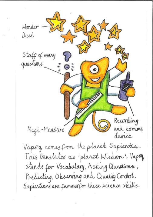 As part of the celebrations during British Science Week in March 2023, a competition was held which asked pupils to design a mascot to represent our vision and principles for Science at Norton. The winning entry was designed by Wilf in Year 4, shown below: