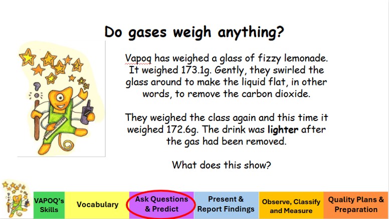 We use Vapoq to showcase what it means to work scientifically and develop those disciplinary skills. Teachers use Vapoq to set tasks for pupils, inspire investigations and assess pupils' use of scientific skills.