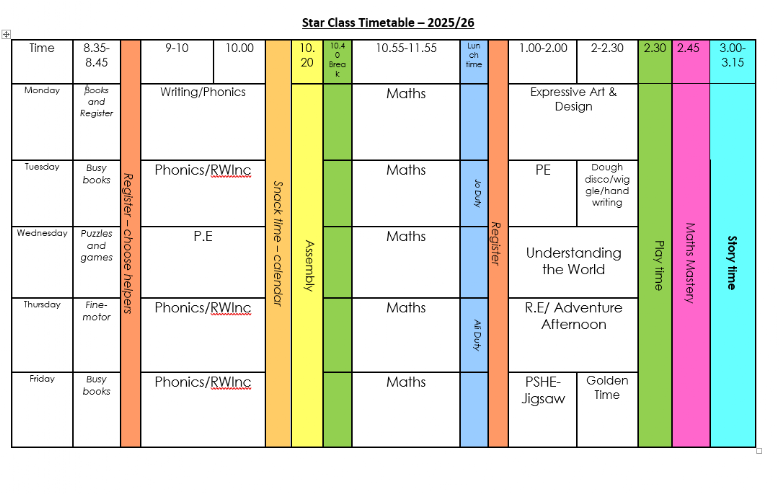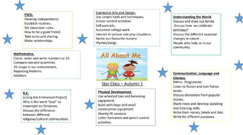 Everyday in Star Class we learn a new letter sound following the RWI Scheme. The children learn how to form the letters correctly using a rhyme to help them. As the children learn more sounds we begin to orally segment and blend simple words as they start to become readers.